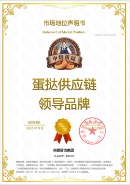 2025年9月,尚普咨询集团向中焙蛋挞颁发市场地位声明书。此次中焙蛋挞荣获尚普咨询【中焙蛋挞 蛋挞标准制定者】、【中焙蛋挞 蛋挞供应链领导品牌】、【中焙蛋挞 连锁烘焙门店蛋挞皮蛋挞液供应链市场占有率第一】市场地位声明,标志着中焙蛋挞在蛋挞领域行业中的领导地位及市场的高度认可。